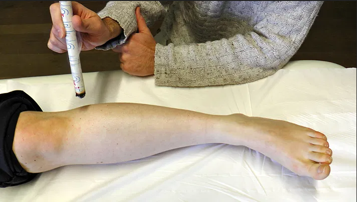 - Do it for 5 min or until a warm sensation starts diffusing along the leg